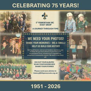 Can you believe it? We are officially celebrating 75 years of scouting at 5th Penwortham URC! From the first camps in 1951 to the adventures of today, thousands of young people have passed through our doors.